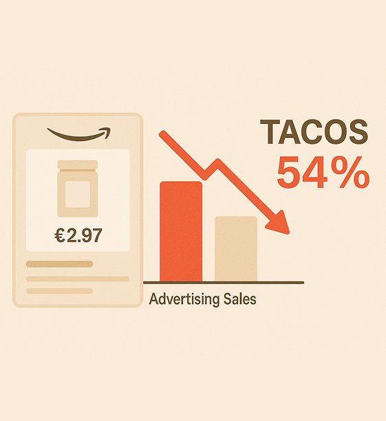 To make matters worse, their Total Advertising Cost of Sales (TACOS) was at an unsustainable 54%, meaning that for every £1 they earned in revenue, more than half was being eaten up by advertising spend. The client was frustrated, skeptical about Amazon PPC management, and unsure whether the business could ever become profitable.